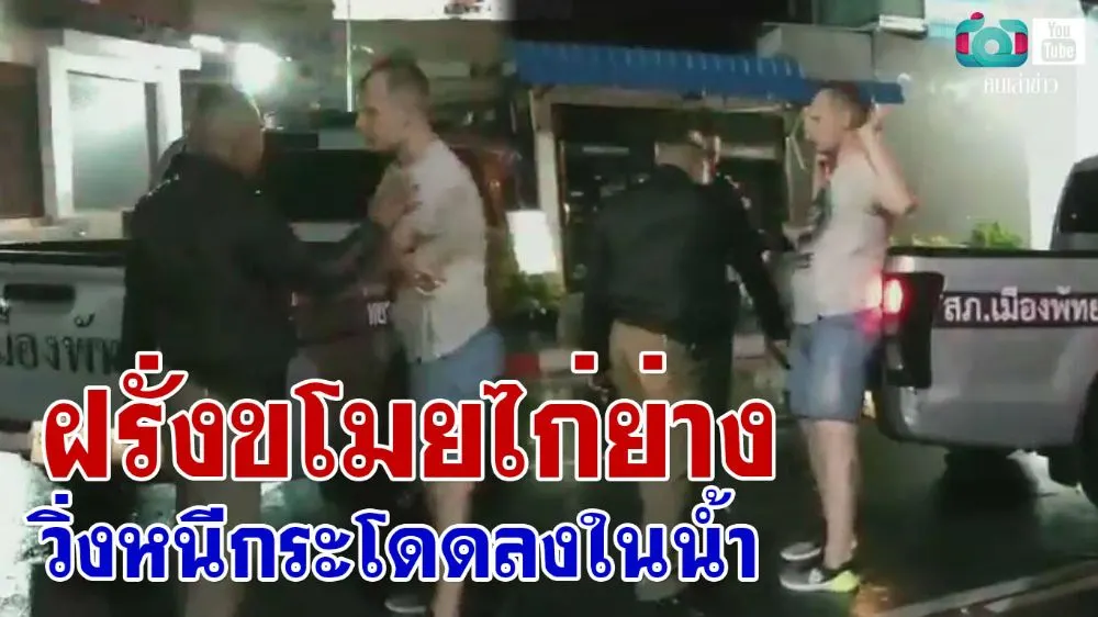 ฝรั่งขโมยไก่ย่าง !!! วิ่งหนีกระโดดลงในน้ำ 04/09/2561