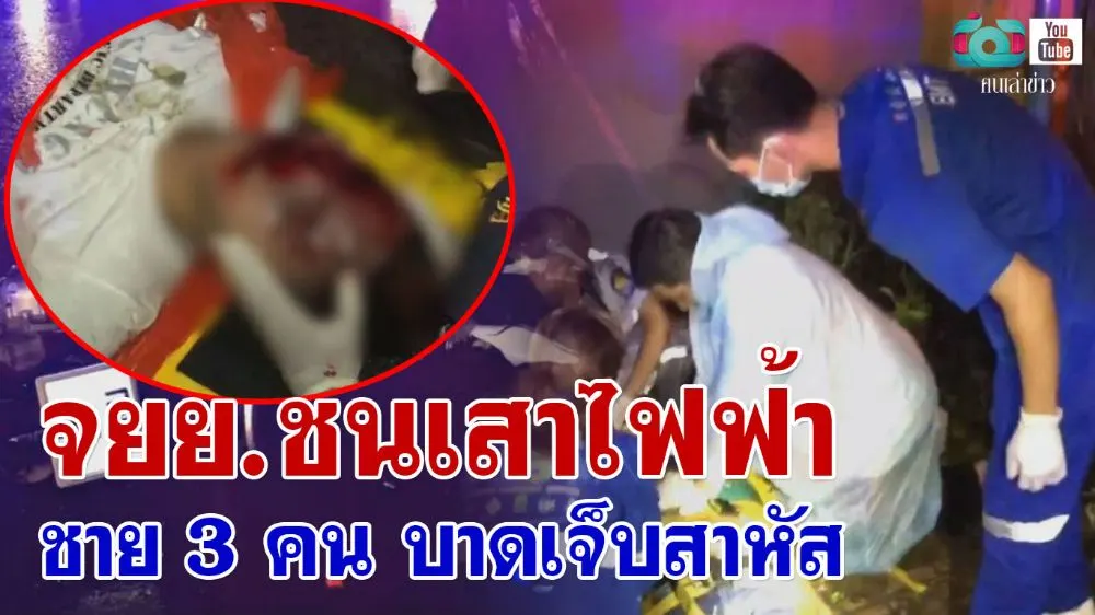 รถจยย.ชนเสาไฟฟ้า ชาย 3 คน บาดเจ็บสาหัส 04/09/2561
