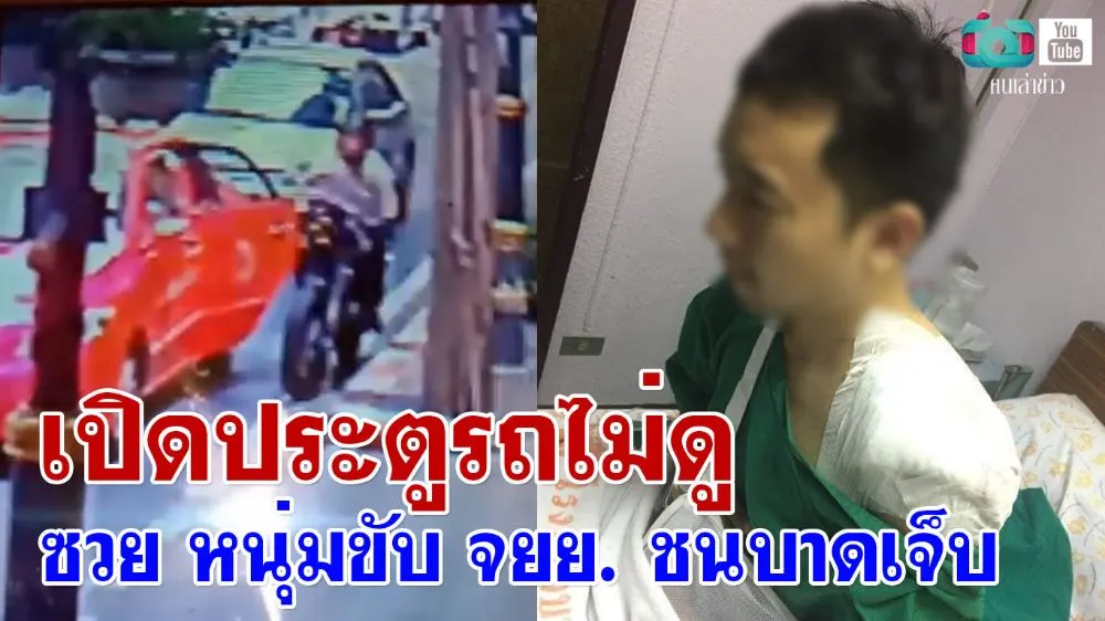 เปิดประตูรถไม่ดู ซวย !!! หนุ่มขับ จยย. ชนบาดเจ็บ