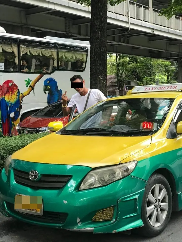 ผมจึงตอบอย่างสุภาพเน้นย้ำว่าสุภาพมาก เพราะวันนี้ไปไหว้พระมา อยากจะพยายามมีสติจริง ๆ บอกพี่เขาว่า "ไม่ไปครับ แต่พี่ทำแบบนี้ ในป้ายเขียนไว้ พี่โดน 2 เด้งนะครับ ปฏิเสธผู้โดยสารด้วย แถมไม่ยอมกดมิเตอร์ด้วย" พี่แกนักเลงมากครับ ทำท่าเหมือนจะเดินเข้ามา แต่ไม่เดิน ชูนิ้วกลางใส่ผมด้วย เก๋าจนผมใจสั่น