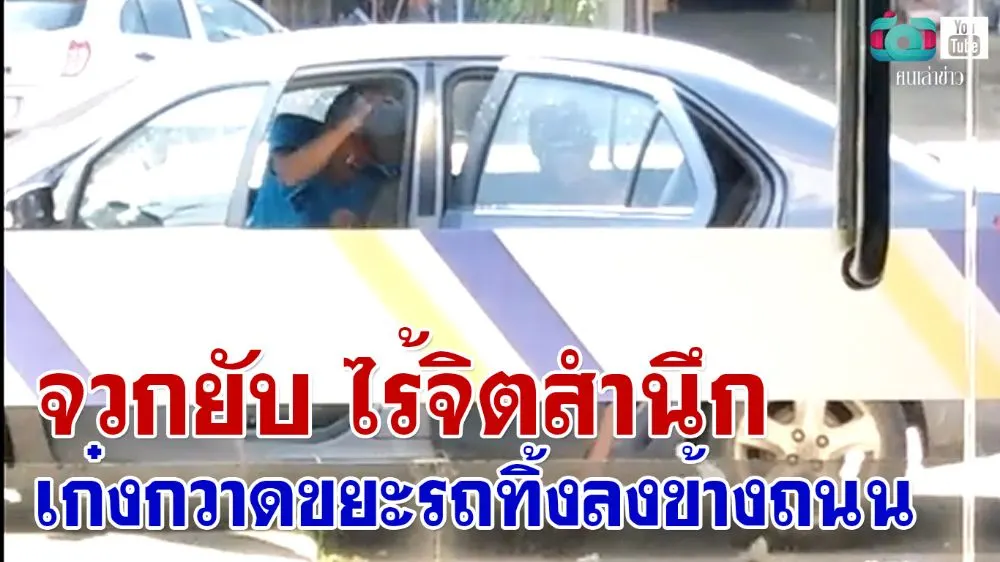 จวกยับ ไร้จิตสำนึก เก๋งกวาดขยะรถทิ้งลงข้างถนน