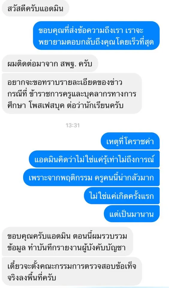โดยแอดมินเพจ ได้โพสต์ตอบทางว่า สพฐ. จะลงพื้นที่ไปสอบเอง ไม่เกี่ยวกับทาง รร. ละ