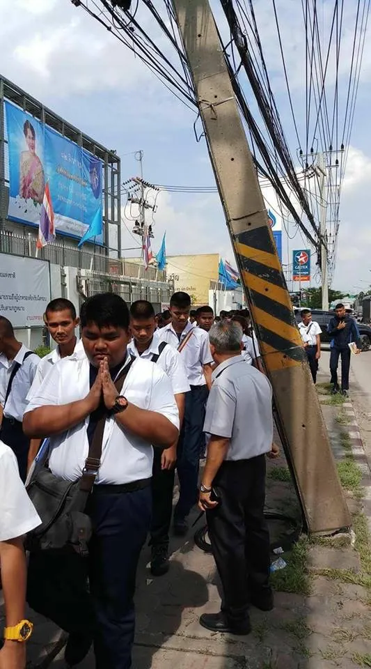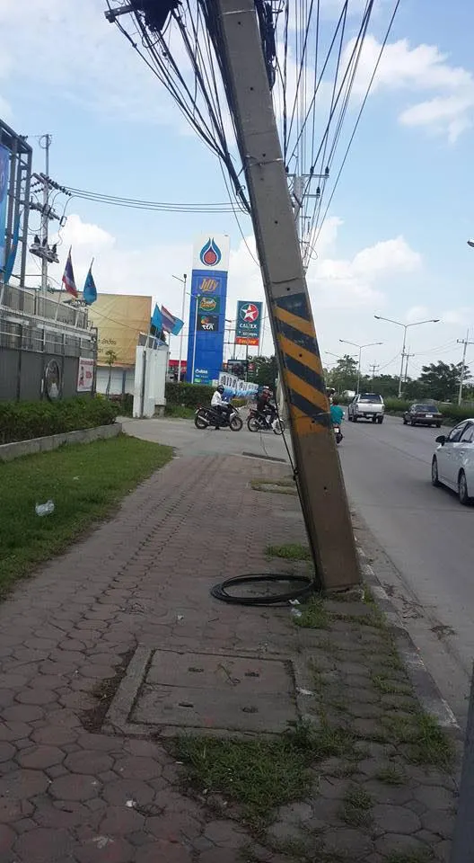 📣พิกัดถนนลำลูกกาคลองสี่ ตรงข้ามวัดคลองชัน เสาต้นนี้เอียงมานานแล้ว จนตอนนี้ดูจากภาพเอาแล้วกัน แจ้งไปแล้ว มีช่างมาก็ทำกันแต่สายไฟ ไม่เห็นดำเนินการอะไรกับตัวเสาไฟเลย ต้องให้เกิดเหตุก่อนหรือครับ ที่ไม่ล้มก็เพราะติดสายเคเบิลอยู่ วันดีคืนดี ล้มลงมาจะเป็นยังไง จะทำอะไรสักอย่างก็ไม่ได้ เป็นเสาขององค์การโทรศัพท์อีก ผมคงต้องได้แต่ให้เด็กไหว้ภาวนาขอพรให้มันไม่ล้มลงมาทับเด็กๆและยืนหยัดอยู่แบบนี้เท่านั้นแหละคร้าบ....