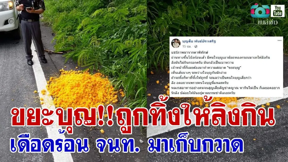 ขยะบุญ!!ถูกทิ้งให้ลิงกิน เดือดร้อน จนท. มาเก็บกวาด