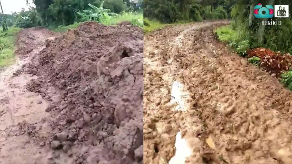 ชาวบ้านโอด!!! ทางไป รร ของเด็กๆ หลังผู้รับเหมาทำถนนไม่เสร็จ