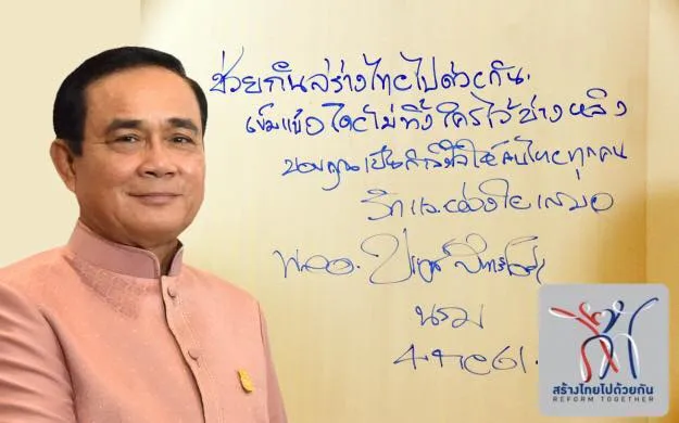 พลเอกประยุทธ์ จันทร์โอชา นายกรัฐมนตรี และหัวหน้าคสช. กล่าวในระหว่างปาฐกถาพิเศษ “หนึ่งองศาขยับ ปรับเปลี่ยนประเทศไทย : กำลังคนคุณภาพกับการปฏิรูปประเทศเชิงบูรณาการ” ที่ทำเนียบฯ ถึงกรณีที่สื่อนำภาพ นายกฯและบอร์ด ที่เขียนด้วยลายมือ ก่อนการประชุม ครม. เมื่ออังคารที่แล้ว เพื่อประชาสัมพันธ์กิจกรรม “ร่วมใจสร้างไทยไปด้วยกัน”