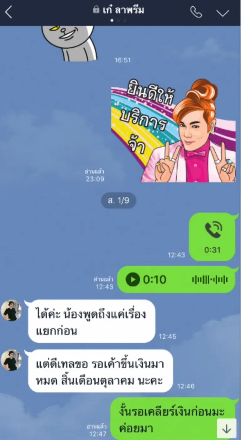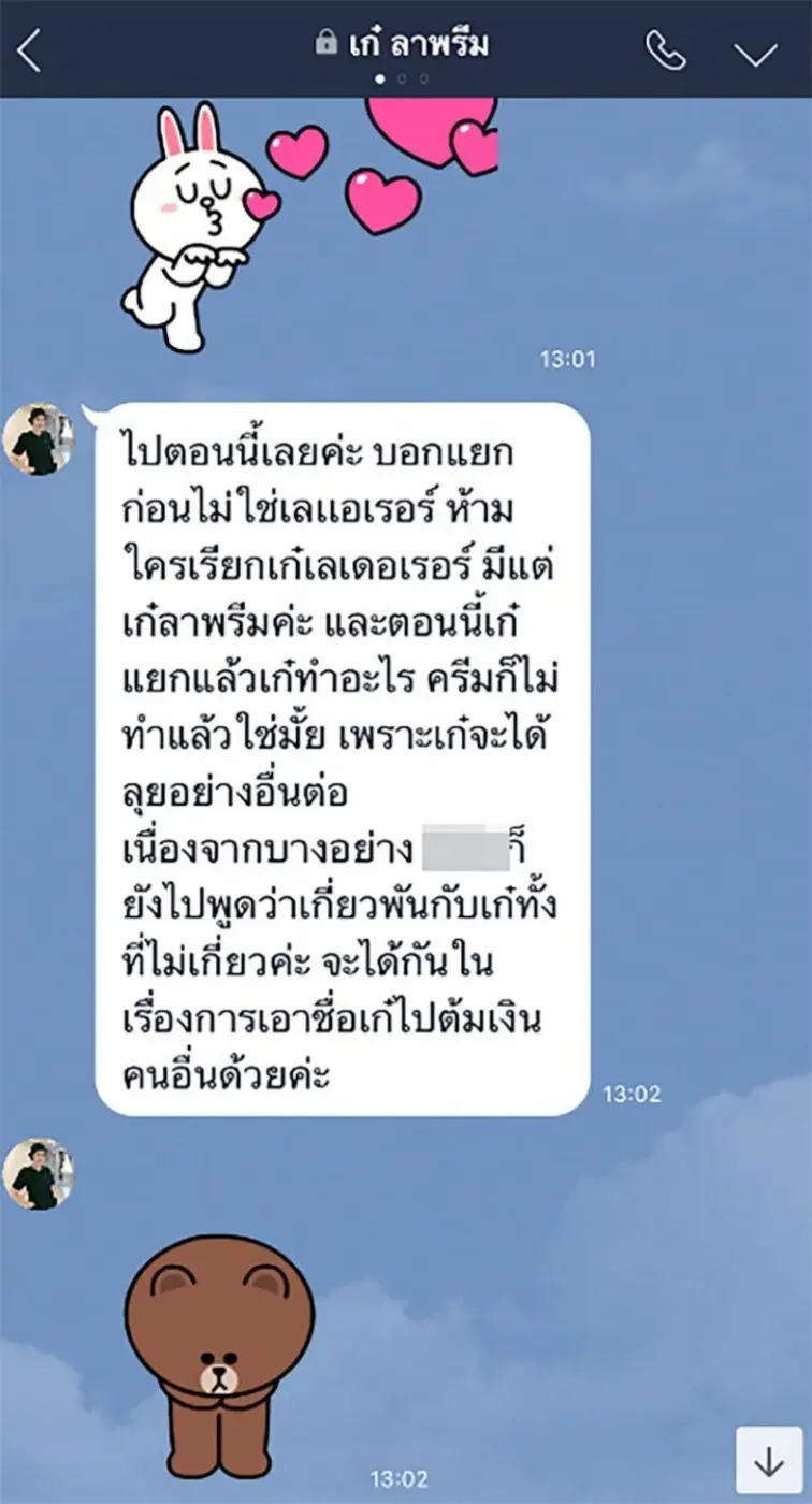 เปิดแชทไลน์ เก๋ เลเดอร์เรอร์ ก่อนฆ่าตัวตาย คุยเรื่องถูกยืมเงิน 11 ล้านแต่ไม่ได้คืน