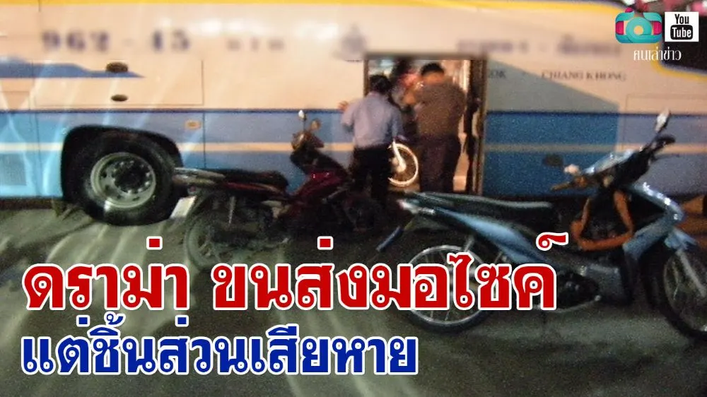 ดราม่า !!! ขนส่งมอไซค์ กับรถบัส แต่ชิ้นส่วนรถเสียหาย
