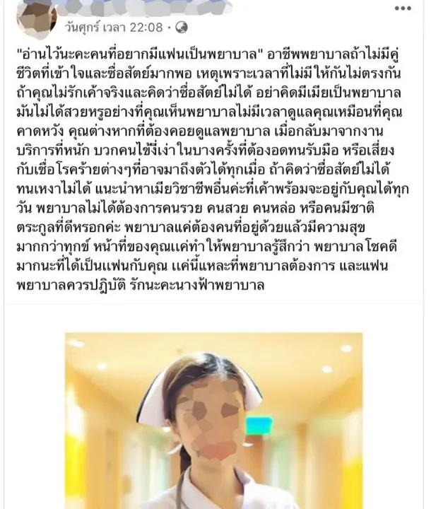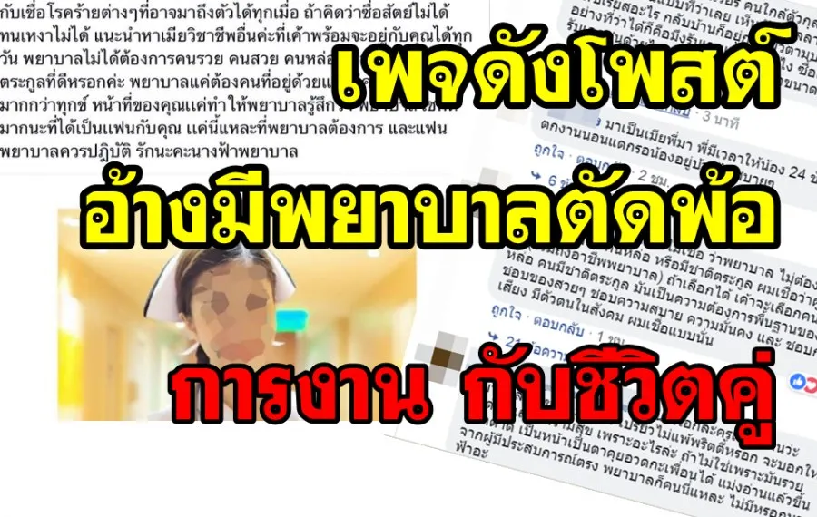 เพจดังโพสต์เรื่องราว!! อ้างมีพยาบาลตัดพ้อ การงาน กับชีวิตคู่