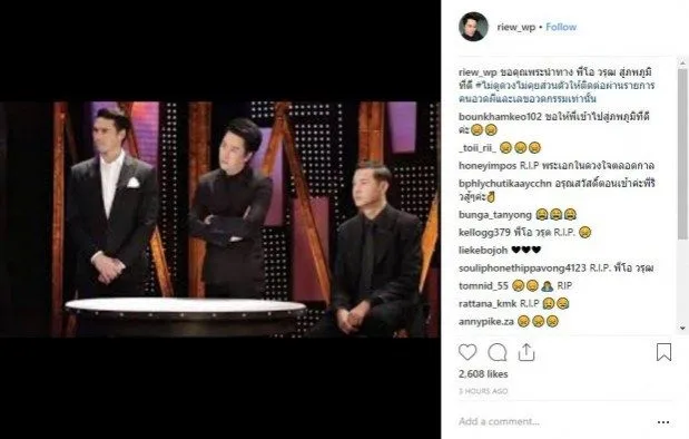 โดย ทางด้าน ริว จิตสัมผัส ก็ได้โพสต์ภาพที่ครั้งหนึ่งเคยร่วมงานกับโอ วรุฒ พร้อมระบุข้อความว่า "ขอคุณพระนำทาง พี่โอ วรุฒ สู่ภพภูมิที่ดี #ไม่ดูดวงไม่คุยส่วนตัวให้ติดต่อผ่านรายการคนอวดผีและเลขอวดกรรมเท่านั้น"