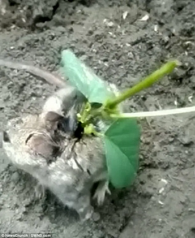 โดยสิ่งที่พบคือ หนูที่น่าสงสารตัวหนึ่งที่ถูกพบในไร่ถั่วเหลือง แต่ที่น่าตกใจมากๆก็คือ หนูกำลังนอนดิ้นไปดิ้นมา ขณะที่มีต้นถั่วเหลืองงอกขึ้นบนหลังของมัน และเห็นได้ชัดว่าหนูกำลังทุกข์ทรมานกับสิ่งที่มันกำลังเผชิญอยู่