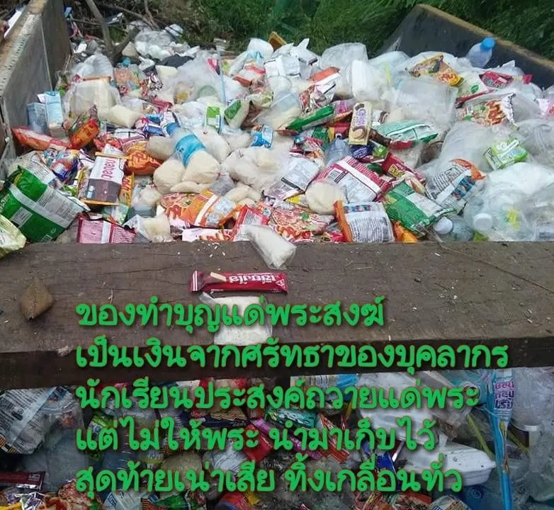 #ฉาวอีกแล้วครับพี่น้อง ผอ.โรงเรียน มีสถานศึกษาใดทำแบบนี้บ้าง #ของบิณฑบาตที่นักเรียนและบุคลากรในโรงเรียน ได้ร่วมกันซื้อสิ่งของต่างๆมาใส่บาตร แต่ผอ.#ไม่ให้สิ่งของนั้นๆไปกับพระ เก็บไว้เองจนเน่า บูด เสีย และนำไปแจกนักเรียนเวลามีกิจกรรมต่างๆ ผู้ปกครองและสังคม #ท่านเห็นแล้วรู้สึกอย่างไรกับภาพนี้ ล่าสุดในเย็นวันนี้ ผอ.ผู้ใจดีมีเมตตา นำสิ่งของต่างๆ ไปให้นักเรียนเลือกทาน สภาพอาหารหมาดีเสียกว่า ใครอยากได้ ไปรื้อที่ถังขยะเอาเอง ช่วยกันแชร์ออกไปให้โลกรู้