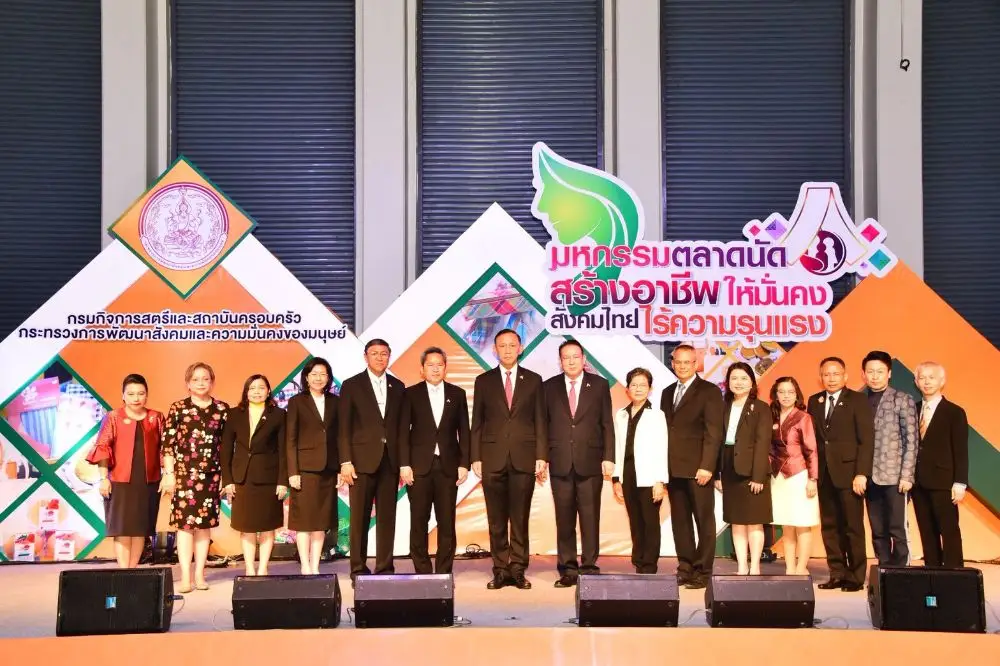 ด้าน นายเลิศปัญญา บูรณบัณฑิต อธิบดีกรมกิจการสตรีและสถาบันครอบครัว (อธิบดี สค.) กล่าวว่า การจัดงาน มหกรรมตลาดนัด สร้างอาชีพให้มั่นคง สังคมไทยไร้ความรุนแรง” ที่จัดขึ้นระหว่างวันที่ 12 – 16 กันยายน 2561 นี้ เป็นการนำสินค้าและผลิตภัณฑ์นวัตกรรมพื้นถิ่นฝีมือกลุ่มสตรีและครอบครัวทั่วประเทศที่ได้รับการส่งเสริม ฝึกสอน และพัฒนาฝีมือจากศูนย์เรียนรู้การพัฒนาสตรีและครอบครัว ทั้ง 8 แห่ง ของ สค. พม. มาจำหน่ายและสาธิตวิธีการผลิต โดยสมาชิกในครอบครัวได้ร่วมกันทำ เพื่อส่งเสริมเศรษฐกิจให้สตรีและครอบครัว ซึ่งเป็นส่วนหนึ่งที่จะช่วยแก้ไขปัญหาความรุนแรงในครอบครัวและสังคมลงได้ โดยทางศูนย์การเรียนรู้ฯ ได้ให้การสนับสนุนในการเสริมสร้างทักษะอาชีพ เช่น การออกแบบและตัดเย็บเสื้อผ้า การตัดและตกแต่งทรงผม การนวดแผนไทย การโรงแรม และการพัฒนาผลิตภัณฑ์ต่างๆ ทั้งอาหาร เสื้อผ้า กระเป๋า และของใช้ในครัวเรือน ซึ่งเป็นวัตถุดิบที่มีอยู่ในท้องถิ่นมาสรรค์สร้างเป็นนวัตกรรมที่น่าสนใจ รวมไปถึงราคาที่คนส่วนใหญ่สามารถจับจ่ายได้ นอกจากนั้น ยังมีการส่งเสริมต่อยอดให้สตรีได้รวมกลุ่มเพื่อเริ่มต้นธุรกิจของตนเองอีกด้วย