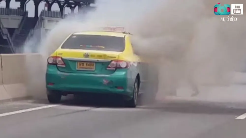 ไฟไหม้รถแท็กซี่ส่วนบุคคล บนทางยกระดับอุตราภิมุข (มีคลิป)