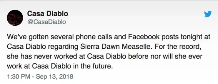 ด้านสาวผิวขาวที่ถูกเหยียดชนชาตินั้น เจ้าของคลับ Randy Kaiser ได้ออกมาเผยว่า นาง Measelle ไม่ได้ทำงานที่สโมสรอย่างน้อย 6 เดือนแล้ว
