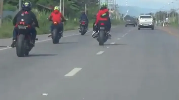 กลุ่มรถจักรยานยนต์บิ๊กไบค์ยกล้อกลางถนน สร้างความเดือดร้อนให้กับผู้ใช้รถคนอื่น ๆ ที่จังหวัดราชบุรี