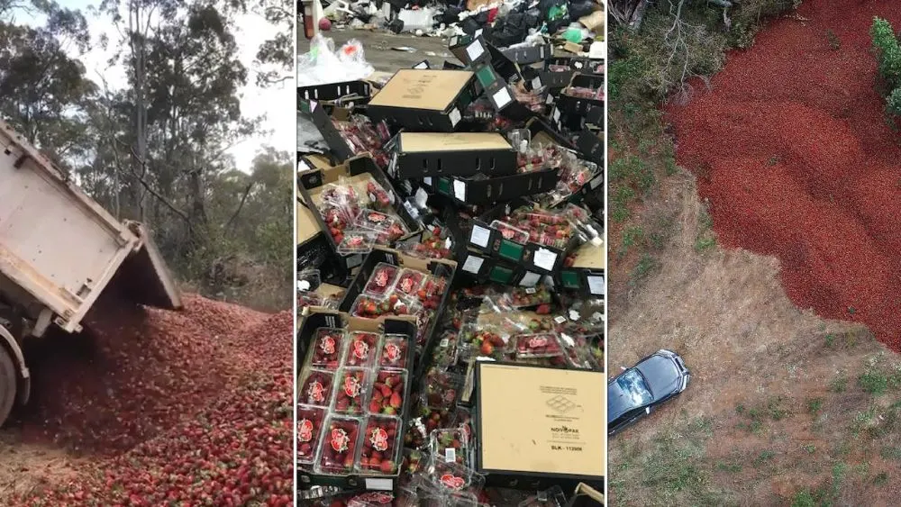 ไม่ปลอดภัยก็ต้องทำลายทิ้ง! ภาพรถบรรทุกขนสตรอเบอรีจำนวนมากไปทำลายทิ้ง หลังพบเข็มเย็บผ้าในสตรอว์เบอร์รี