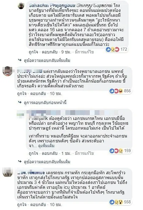 ต่อให้ช่วยประสานงานย้าย รพ ได้ ตอนหลังก็ฟ้องร้องทวงหนี้ค่ารักษากันหมดเนื้อหมดตัวอยู่ดี หลายครอบครัวถึงขั้นล้มละลายสิ้นเนื้อประดาตัวต้องเทขายทรัพยสินเพื่อหาเงินมาจ่าย รพ เอกชนก็มีเยอะแยะ