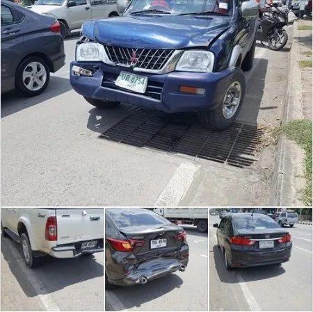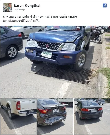 รถชนกัน 4 คันรวด คอหวยสังเกตป้ายทะเบียนคล้ายกันจริงๆเลย แหม่..งวดนี้มีความหวังแล้ว