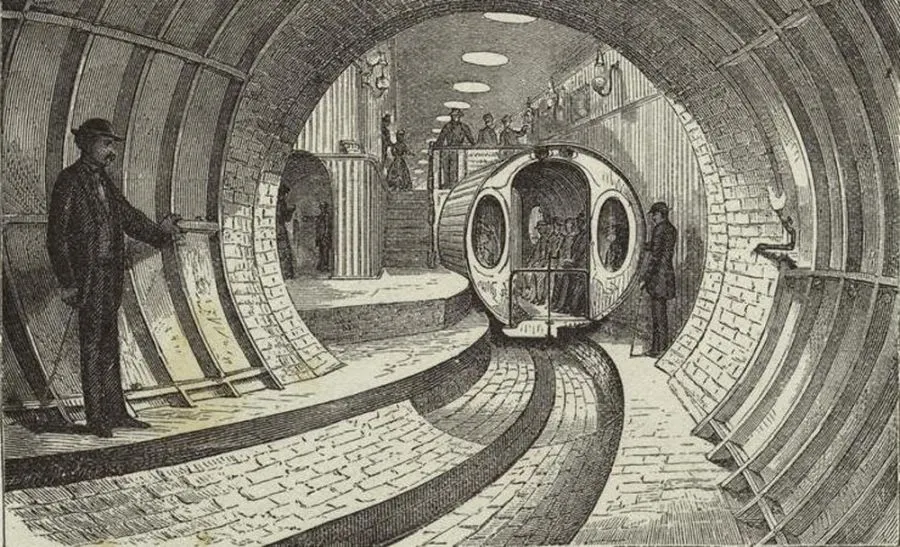 1870 — รถไฟใต้ดินที่ใช้แรงอัดอากาศของบีช (Beach’s Pneumatic Underground Railway)
