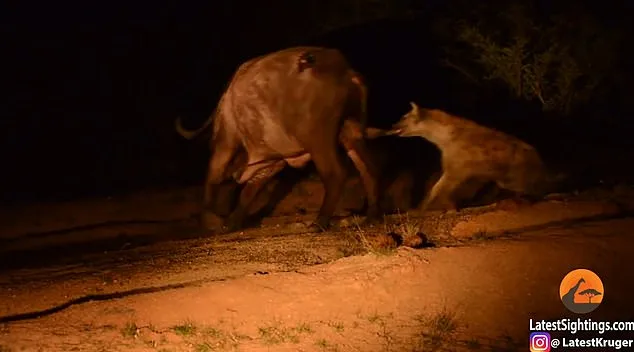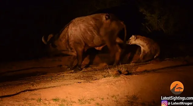 แน่นอนว่าฉากการต่อสู้ครั้งใหม่นี้เล่นเอาเจ้าควายป่าถึงกับตกใจเป็นอย่างมาก เพราะมันไม่คาดคิดมาก่อนว่าตัวเองจะถูกโจมตีซ้ำสองโดยเจ้าไฮยีน่าตัวแสบ ท่ามกลางความเจ็บปวดจากการโดนงับ เจ้าควายก็พยายามสะบัดอย่างแรงเพื่อให้หลุดจากการงับของไฮยีน่า การต่อสู้ดำเนินไปสักพักก่อนที่เจ้าไฮยีน่าจะยอมแพ้ไปในที่สุด นับเป็นโชคดีของควายป่าที่สามารถเอาชีวิตรอดได้ถึงสองครั้งสองครา น่าทึ่งมากจริงๆ