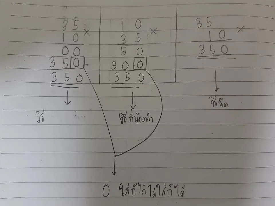 เด็กแต่ละคนเข้าใจไม่เหมือนกันครับบางคนชอบใส่ศูนย์เข้าเพื่อให้มันเป็นเลขเต็ม แต่บางคนก็ไม่ชอบใส่แต่สรุปแล้วคำตอบก็ออกมาเหมือนกัน