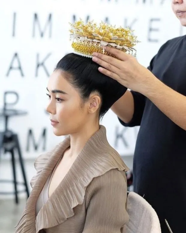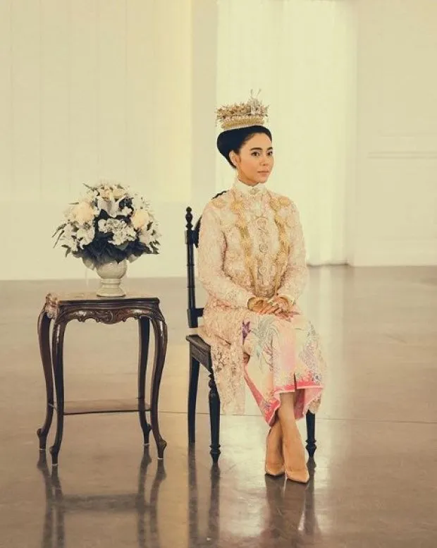 วันนี้เราจะพาทุกคนไปชมภาพของเธอในชุดเจ้าสาวแบบ”บาบ๋า” ซึ่งเป็นมรดกทางวัฒนธรรมของชาวภูเก็ตและของคนจีนที่ผสมผสานกัน โดยเจ้าสาวจะสวมเสื้อตัวในเป็นเสื้อลูกไม้สีอ่อนแขนยาวคอตั้งแบบจีนนุ่ง คู่กับผ้าถุงปาเต๊ะสีเดียวกัน สวมทับด้วยเสื้อครุยผ้าป่านรูเปีย หรือผ้ามัสลินปักลวดลาย แล้วติดเครื่องประดับทองชุดใหญ่ หรือ “โกสัง” เป็นเข็มกลัด 3 ชิ้นที่เสื้อด้านนอก เพิ่มความหรูหราด้วยเครื่องประดับอย่างสร้อย กำไลข้อมือข้อเท้า แหวน และรองเท้าปักดิ้นเพื่อแสดงถึงความมั่งคั่ง ขอบอกว่าอลังการสุดๆ