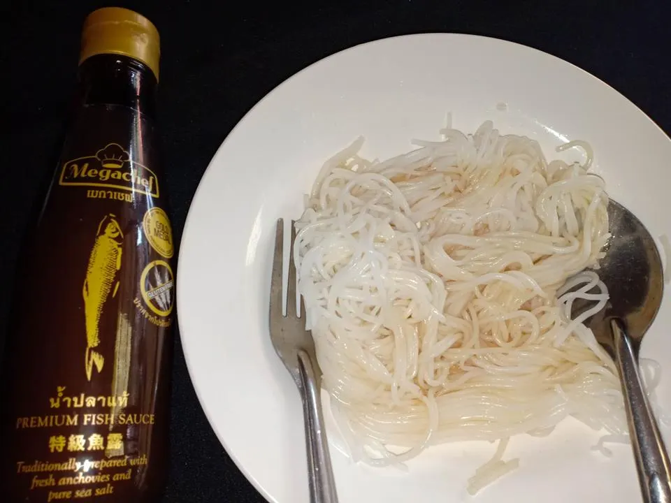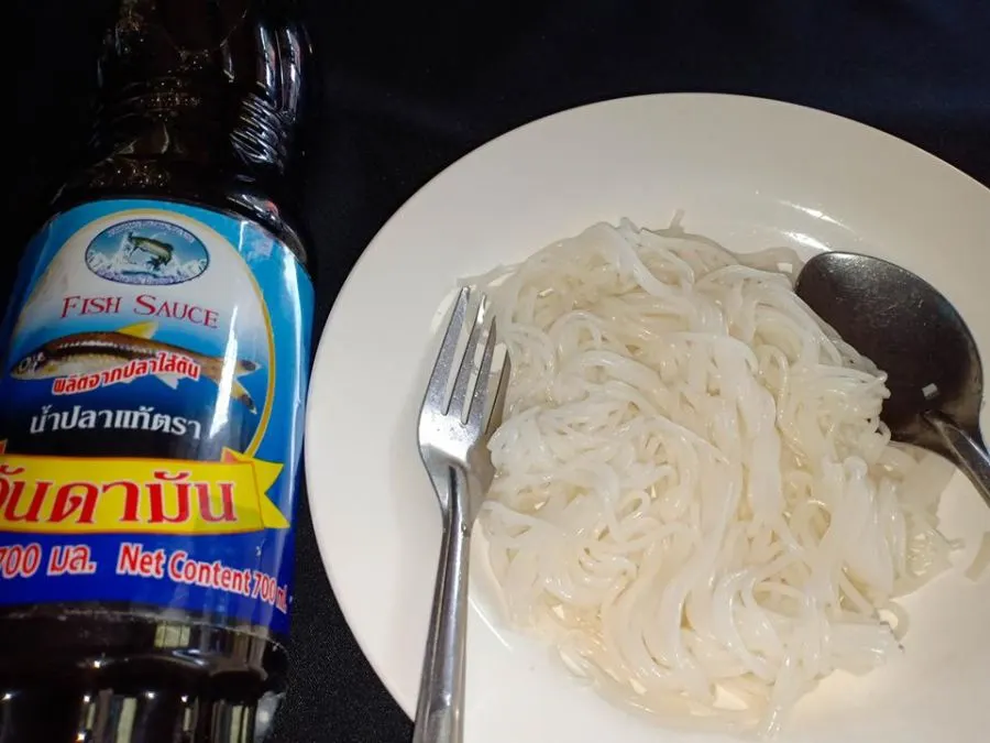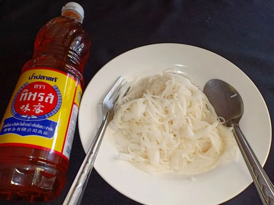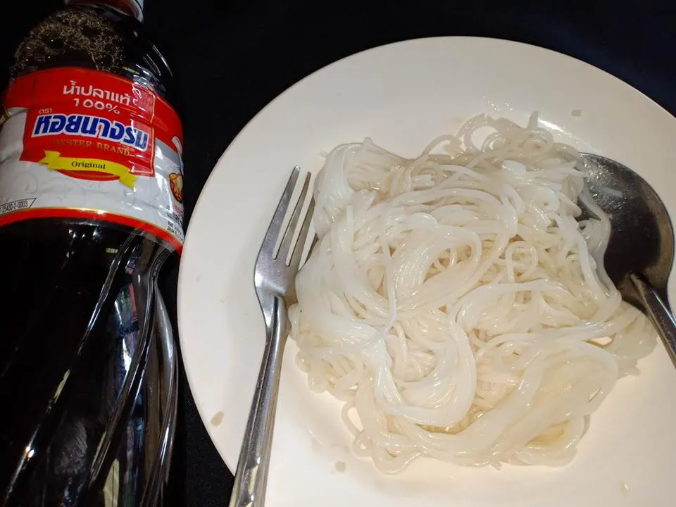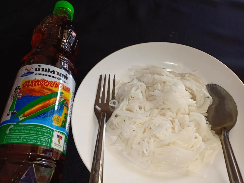#น้ำปลาตราปลาหมึก ความเค็มเคลืบเส้นดี แต่พอเคี้ยวๆซักพักความจืดๆ