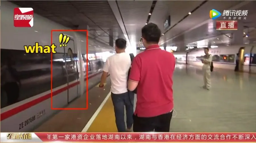 นักข่าวชายรายหนึ่งลงพื้นที่รายงานข่าวการเปิดให้บริการรถไฟความเร็วสูง กว่างโจว-เซินเจิ้น-ฮ่องกง เมื่อช่วงสุดสัปดาห์ที่ผ่านมา ซึ่งระหว่างรอขบวนรถไฟรอบปฐมฤกษ์เคลื่อนเข้าชานชาลาและเข้าเก็บภาพบรรยากาศบนรถไฟ เขาได้ถือโอกาสนั้นขอสัมภาษณ์ผู้โดยสารคนหนึ่ง ที่กำลังรอรถไฟเช่นเดียวกัน แต่ดูเหมือนว่าการสัมภาษณ์นั้นจะเพลิดเพลินไปหน่อย จนทำให้ทั้งคู่ลืมดูเวลาขึ้นรถไฟ รู้ตัวอีกทีประตูรถปิดลงต่อหน้าต่อตาพอดี จนหน้าเหวอไปเลยทั้งคู่