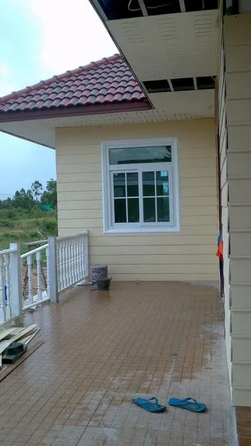 มีโครงการจะปลูกบ้าน 2 หลัง ตอนนี้เสร็จไปหลังนึงแล้ว เลยต้องเอามาอวดสักหน่อย เสร็จไปเมื่อเดือนกรกฏาที่ผ่านมาเอง เพิ่งมีโอกาสได้มาลง ตอนแรกจะปลูกสิ้นปี เพราะกลัวเงินไม่พอ และยังไม่มีเวลาไปคุมงานให้ แต่แม่เราอยากรีบปลูก บอกเราปลูกเท่าที่เงินมีพอ ซึ่งทำให้เราทะเลาะกับแม่ไปพักใหญ่ เพราะเราอยากปลูกให้แม่ดีๆไปเลย แบบที่เราให้แม่สร้าง แม่ก็ไม่เอากลัวนั่นกลัวนี่ กลัวจะแปลกไปจากคนอื่น แต่อันนี้เรารับได้เพราะบ้านแม่เค้าก็ควรจะเลือกสิ่งที่เค้าชอบ