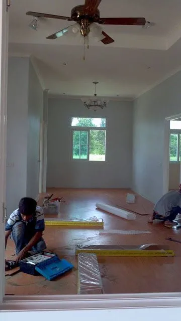 จากที่ผู้รับเหมาตีราคาบ้านฉาบปูนทาสีธรรมดาๆเลยช่างตีมา 8 แสน แต่เนื่องจากเราต้องการมากกว่านั้นราคาจึงแพงขึ้นอยู่ในงบไม่เกิน 1.5 ล้านบาท สิ่งที่ทำให้แพงขึ้นคือ หน้าต่าง UPVC, พื้นลามิเนต ,Stay cool 150 มม. ,ชุดครัว ,กระเบื้องเกรด A,อุปกรณ์ในห้องน้ำไม่ว่าจะเป็นฉากกระจก เคาร์เตอร์วางหินอ่อนฝังซิงค์ เครื่องทำน้ำร้อน,ไม่ฝา,หินทราย ฯลฯ พวกนี้ทำให้งบเกิน 8 แสนไปอยู่ระหว่าง 1.3-1.5 ล้าน ประมาณนั้น