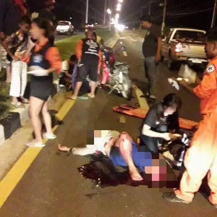รายที่ 1 เป็นหญิง อายุประมาณ 50 ปี บาดเจ็บอาการสาหัส ขาซ้ายขาด จึงได้ปฐมพยาบาลเบื้องต้นด้วยการห้ามเลือด เนื่องจากผู้บาดได้เจ็บเสียเลือดเป็นจำนวนมาก และประสานรถกู้ชีพ รพ.ศรีสังวร สับถ่ายกลางทาง