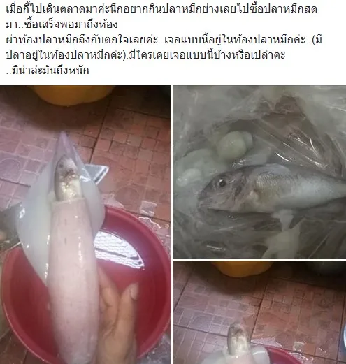 ชาวเน็ตเห็นแล้วถึงกับส่ายหัว เมื่อมีผู้ใช้เฟสบุ๊ครายหนึ่งได้โพสต์ภาพปลาหมึก และเล่าว่าได้ไปซื้อปลาหมึกที่ตลาดสดมา พอมาถึงที่บ้านกะทำอาหารกินผ่าท้องออกมาเจอปลาตัวใหญ่อยู่ในท้อง ซึ้งมีขนาดใหญ่เท่าตัวปลาหมึก ชาวเน็ตหลายท่านเห็นแล้วมองว่าเป็นการ ยัดเพื่อให้น้ำหนักมากขึ้น