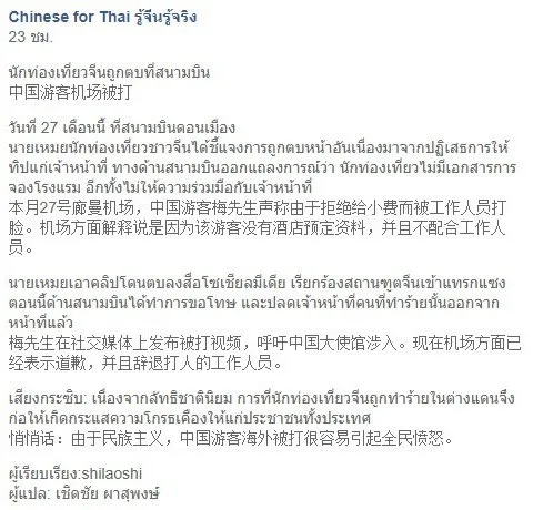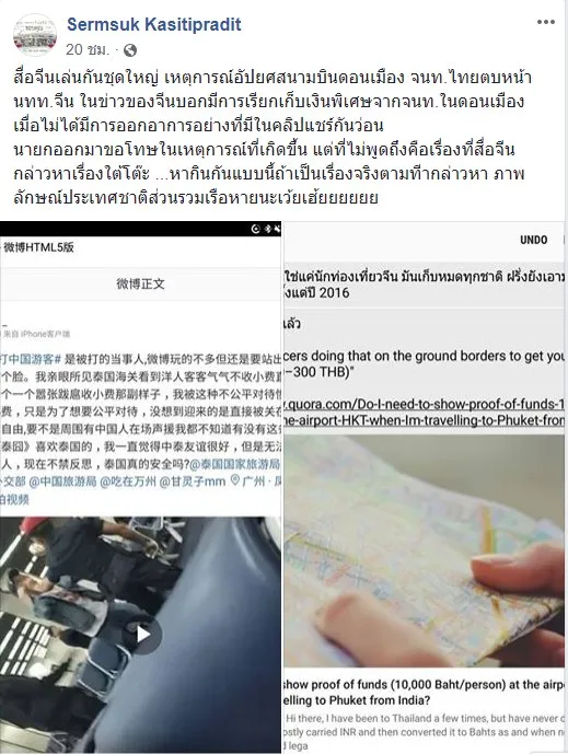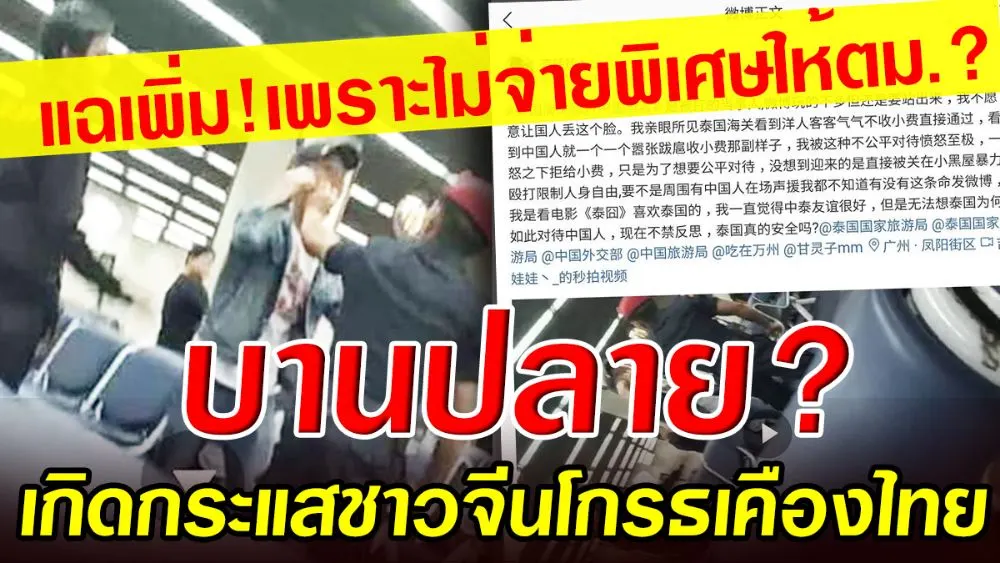 ท่าจะบานปลาย?ปม นทท.จีนถูกรปภ.ตบ เกิดกระแสความโกรธให้คนจีน อ้างเพราะไม่ยอมจ่ายพิเศษให้ตม.? แต่คาดเข้าใจผิด?