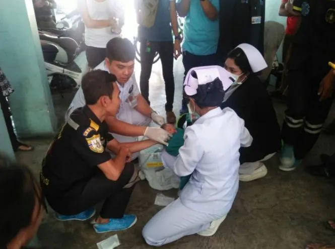 รอดปาฎิหารย์. . . เมื่อเวลา 12:00น. รับแจ้งเหตุพบทารกถูกโยนจากอาคารสูง 5 ชั้น ภายในซ.ศรีสมิต ถ.เทพารักษ์ ท้องที่ สภ.สำโรงเหนือ เมื่อเจ้าหน้าที่ไปตรวจสอบพบว่าเป็นทารก เพศชายแรกคลอด ยังมีสายสะดือติดอยู่ เบื้องต้นยังไม่ทราบว่าถูกโยนมาจากชั้นไหนของอาคาร เคราะห์ดีตัวเด็กติดอยู่ที่ต้นกล้วยจึงปลอดภัย ตามตัวไม่มีบาดแผล มีแต่ตุ่มแดงๆเล็กน้อยตามตัว