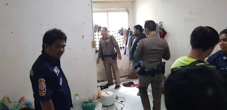 ตำรวจตรวจสอบเบื้องต้นมีสายไฟอีกเส้นผูกอยู่กับท่อน้ำทิ้ง คาดว่า ผู้เสียชีวิตน่าจะทำร้ายตัวเองด้วยการผูกคอและเกิดสายไฟที่ผูกคอตัวเองกับท่อน้ำทิ้งขาด ร่างผู้เสียชีวิตจึง ตกลงมาอยู่ที่โถส้วมภายในห้อง คาดว่าเสียชีวิตมาแล้วไม่ต่ำกว่า 6 ชั่วโมง ตำรวจตรวจสอบภายในห้องไม่มีร่องรอยการรื้อค้นหรือการถูกทำร้ายแต่อย่างใด พบเปลี่ยนกระดาษที่ผู้ตายเขียนข้อความทิ้งไว้บริเวณพื้นกลางห้อง พื้นที่ สภ.พระสมุทรเจดีย์