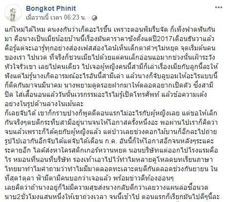 โดยเธอได้แชร์เรื่องราวของเธอผ่านทางเฟซบุ๊กส่วนตัวเล่าประสบการณ์ล่อซื้อผีน้อยสาวไทยรายหนึ่งที่มาติดพันสามีของเธอทั้งๆที่รู้ว่าเขามีครอบครัวแล้วและมีลูกเล็กๆถึง2คน งานนี้เมียหลวงไม่ขอทนจับตัวส่งตำรวจให้จัดการอย่างเด็ดขาด