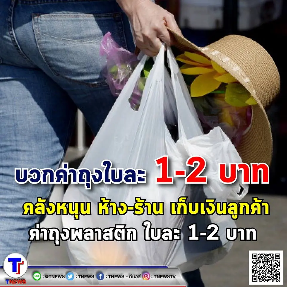 กระทรวงการคลังได้เสนอ ให้ห้างสรรพสินค้า ซูเปอร์มาร์เก็ต ร้านค้าปลีกรายใหญ่ เรียกเก็บเงินการขอใช้ถุงพลาสติกจากลูกค้าใบละ 1-2 บาท
