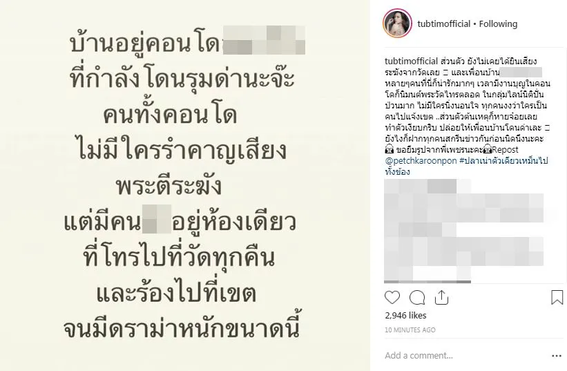 และล่าสุด สาว ทับทิม มัลลิกา เป็นอีกคนที่อยู่ในคอนโดหรูแห่งนี้ได้ออกมาโพสต์ในไอจีของเธอ ว่ายังไม่เคยได้ยินเสียงระฆังจากวัดเลย