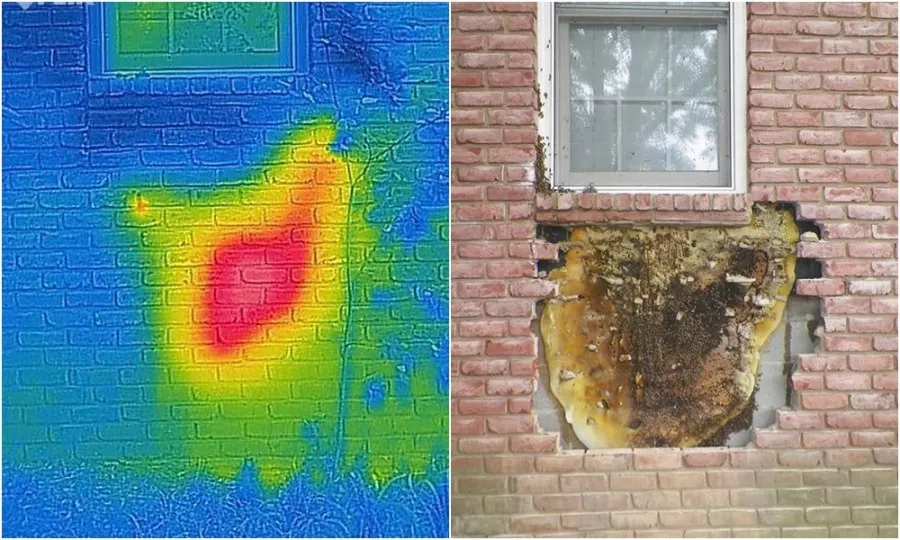 และเมื่อทีมจัดการผึ้งมาถึงพวกเขาก็ใช้วิธีตรวจสอบโดยการจับรังสีความร้อนที่อยู่ข้างในกำแพงอิฐ แล้วก็พบว่ามีบางสิ่งอยู่ข้างหลังกำแพงอิฐจริงๆ