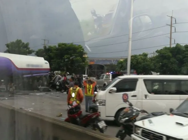 เมื่อเจ้าหน้าที่ฯไปถึงพบรถยนต์เสียหายหลายคันมีทั้งรถบรรทุกน้ำมันพืช รถเก๋ง และรถกระบะ รวม 6 คัน กีดขวางทุกช่องทางของทางด่วน มีผู้บาดเจ็บหลายคนขอความช่วยเหลือ จึงรีบนำส่งโรงพยาบาลใกล้เคียงรวม 5 คน ในที่เกิดเหตุการจราจรติดขัดอย่างหนัก