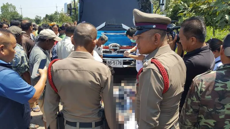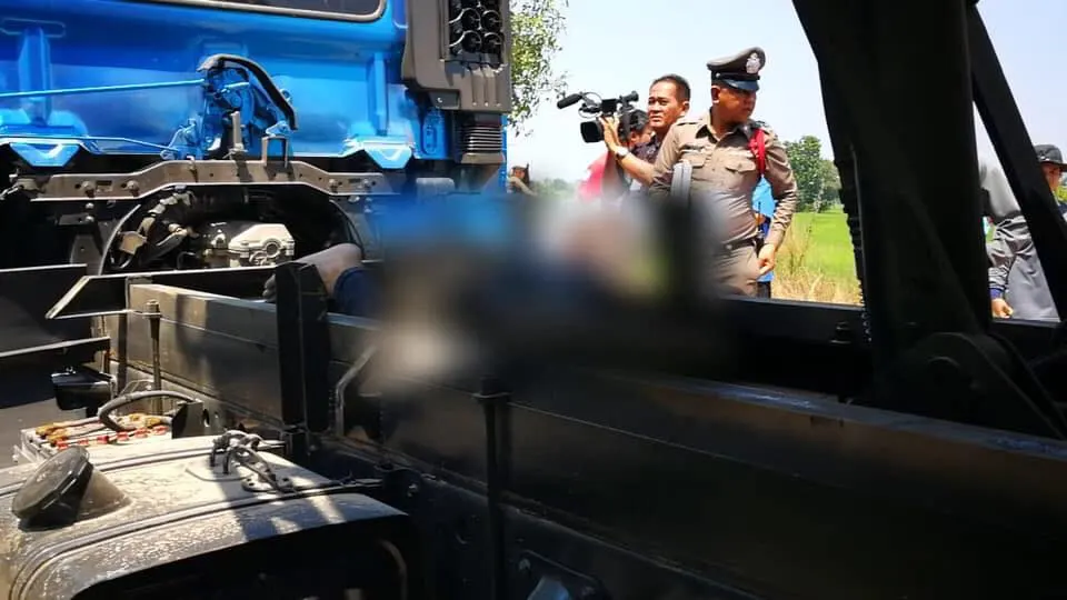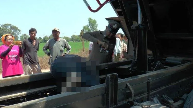 นอนคว่ำหน้าเสียชีวิตบริเวณกระบอกไฮโดรริก(กระบอกดั้ม) ของรถดั้ม 6 ล้อ ทะเบียน 86-5176 สระบุรี ในลักษณะถูกอัดด้วยของหนัก พื้นถนนพบรอยเลือดไหลตกพื้นเพียงเล็กน้อย และพบกุลแจเลื่อนตกอยู่บนพื้นถนน คาดเสียชีวิตมาประมาณ 30 นาที