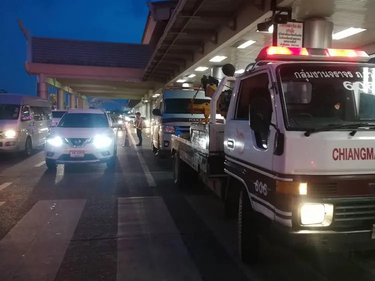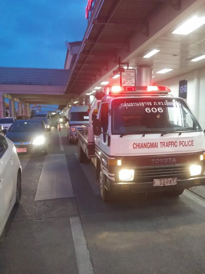 โดยภาพดังกล่าวเผยให้เห็นรถตู้สีเทาติดสติ๊กเกอร์ว่า Police ถูกล็อคล้ออยู่ที่หน้าสนามบินเชียงใหม่ ที่จอดในแถบที่เหลืองสลับขาว ซึ่งหมายถึง ห้ามจอดรถ ทุกชนิด ที่มีลักษณะเป็นแถบสีเหลืองสลับสีขาว เป็นเครื่องหมายแสดงว่า ห้ามจอดรถ ทุกชนิด ระหว่างแนวเขตที่กำหนด เว้นแต่การหยุดรถรับ-ส่งผู้โดยสาร หรือส่งของในระยะเวลาสั้นๆ เท่านั้น แต่คาดว่ารถตู้คันนี้น่าจะจอดทิ้งไว้นาน ไมใช่จอดรับส่ง ผู้โดยสาร