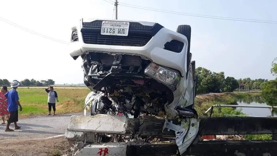 ไม่ชำนาญทางเปิด GPS นำทาง เจอโค้งเสียหลักชนค้างราวสะพานยับ