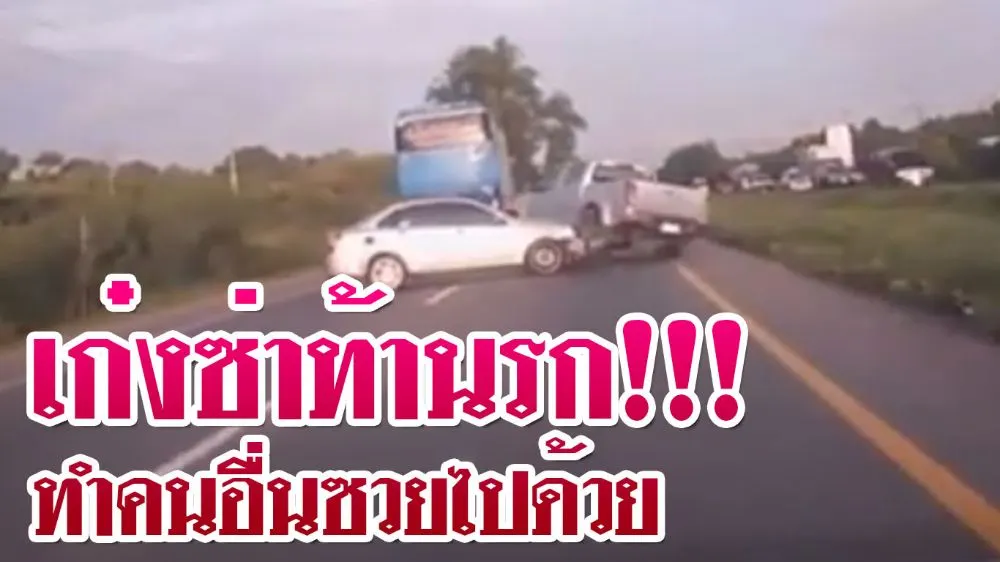 เก๋งซ่าซิ่งมาอย่างไว จนรถพุ่งไปชนรถกระบะหมุนตลบตกลงไปข้างทาง