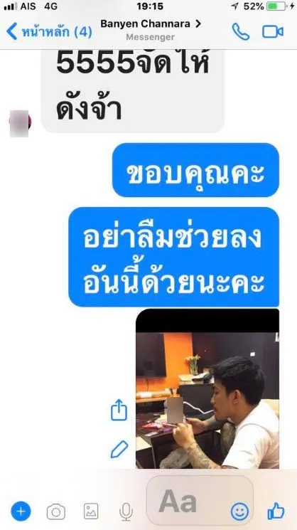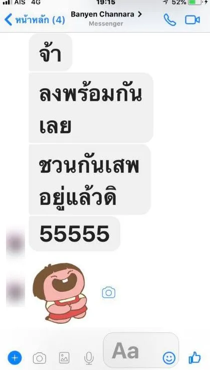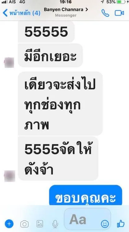 เราไม่ได้แถลงอะไรเพราะนั่นคือสิ่งที่เราโดนกระทำให้ต้องอยู่ในอำนาจของมันและใช้แบล็คเมล์ในวันที่เจอมัน มันจะเอามาเล่นกันกับลูกน้องตลอดเวลา ก็ดีที่มาไม้นี้ จะได้รู้ว่านี่คือวิธีการของมันอันสำคัญโดยที่เราไม่ต้องอธิบายเยอะ แต่ขอสาบานว่าไม่ได้เล่นนะคะและไม่ได้ขายด้วย ถ้าทำแบบนี้ เดี๋ยวพวก...จะร้อง ความชั่วแบบอันลิมิเตด มีอีกเยอะ และอย่ามาพาดพิงครอบครัวกูเพราะครอบครัวกูไม่เคยสอนให้ทำชั่ว พวก...จัดฉากและแอบถ่ายรูปหลอกล่อกูสารพัด โครตเห ดี กูจะได้มีอะไรเล่นมึ..เพิ่ม!! ทั้งนี้เจ้าตัวยังได้โพสต์คลิปทวงเงินเสี่ยโป้พร้อมพูดคุยกันไปมาโดยมีการเถียงกันเรื่องเงินหลายบาทเอาเป็นว่ายคลิปนั้นจะเป็นยังไงและรายละเอียดจะเป็นแบบไหนก็ไปฟังกัน