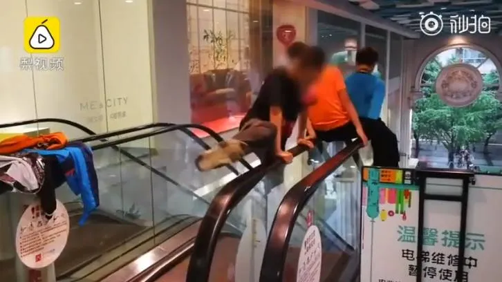 "ด่ากันสมใจ" 3 เด็กจีนป่วน ปีนเล่นราวบันไดเลื่อน ผู้ปกครองไม่ห้ามแถมยังยืนถ่ายคลิป