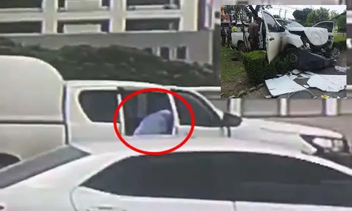 คลิปนาทีกระบะพุ่งตกจากลานจอดชั้น 6 อาคารสำนักงาน อย. คนขับหนีทัน รอดหวุดหวิด