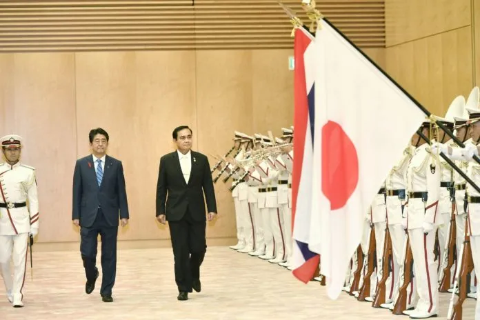 ทั้งนี้ “พล.อ.ประยุทธ์ นายกฯไทย” ยืนยันต่อหน้า นายกฯญี่ปุ่นว่า คนไทยได้เลือกตั้งกุมภาฯ 62 แน่นอน โดยได้กล่าวไว้ว่า รัฐบาลไทยได้เดินหน้าปฏิรูปประเทศสู่ความเป็นประชาธิปไตยที่ยั่งยืนอย่างต่อเนื่อง จะมีการเลือกตั้งภายในเดือนก.พ.2562 และขอขอบคุณรัฐบาลญี่ปุ่นที่เข้าใจและสนับสนุนไทยมาตลอด และยินดีที่เอกชนญี่ปุ่นมีความมั่นใจดำเนินธุรกิจในไทยเพิ่มขึ้นอย่างต่อเนื่อง