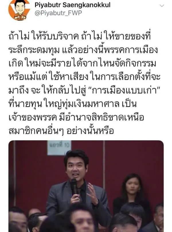 เมื่อวันที่ 10 ต.ค. ที่ผ่านมา มีรายงานว่า กกต.ห้ามอนาคตใหม่รับบริจาคเงินเข้าพรรค โดย Pop Brynywhite โพสท์ระบุว่า